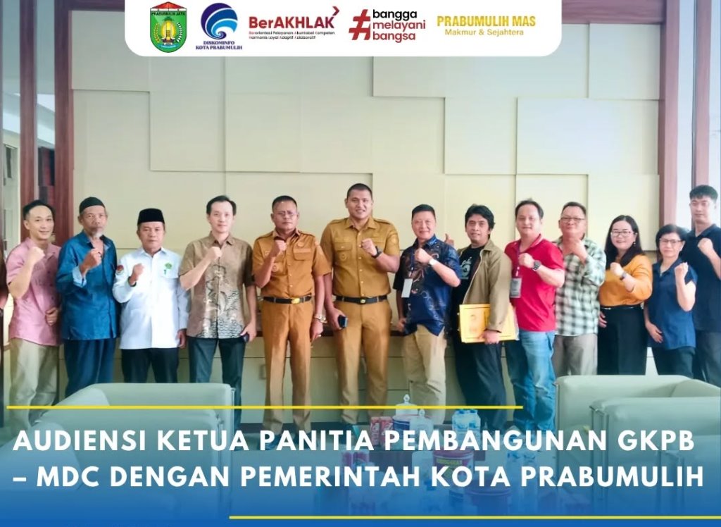 PRABUMULIH – Pemerintah Kota Prabumulih menerima audiensi Ketua Panitia Pembangunan Gedung Gereja Kristen Perjanjian Baru Masa Depan Cerah Prabumulih (GKPB – MDC), yang berlangsung di Ruang Kerja Wali Kota Prabumulih, Selasa (21/4/2026).