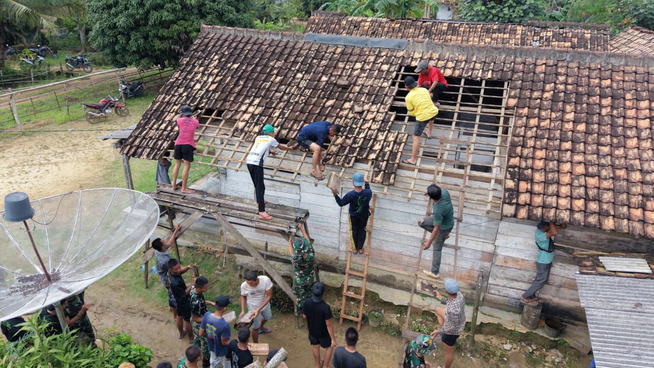 Kegiatan pembongkaran ini dilakukan secara gotong royong bersama masyarakat setempat. Dengan penuh semangat kebersamaan, prajurit TNI dan warga bahu-membahu merobohkan bagian rumah yang sudah tidak layak untuk kemudian dibangun kembali menjadi hunian yang lebih kokoh dan sehat.