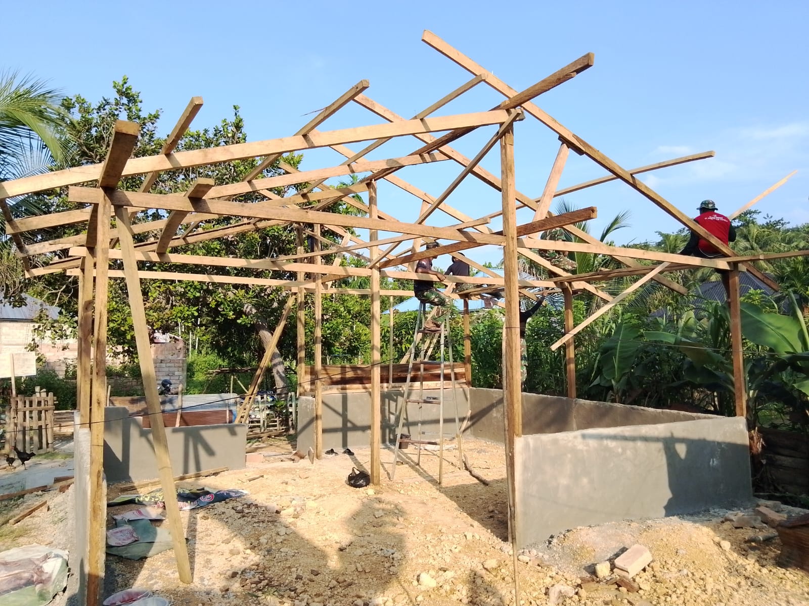 Tahapan ini menjadi momentum krusial guna memastikan bangunan memiliki struktur yang kokoh sebelum beralih ke pemasangan seng, sehingga target hunian sehat bagi masyarakat kurang mampu dapat segera tuntas.
