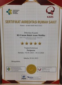 suarajurnal.co,TANJUNG ENIM- Rumah Sakit Bukit Asam Medika dinyatakan lulus penilaian akreditasi dengan predikat Paripurna (Bintang 5) oleh Lembaga Independen Penyelenggara Akreditasi KARS pada 2 Januari 2023.