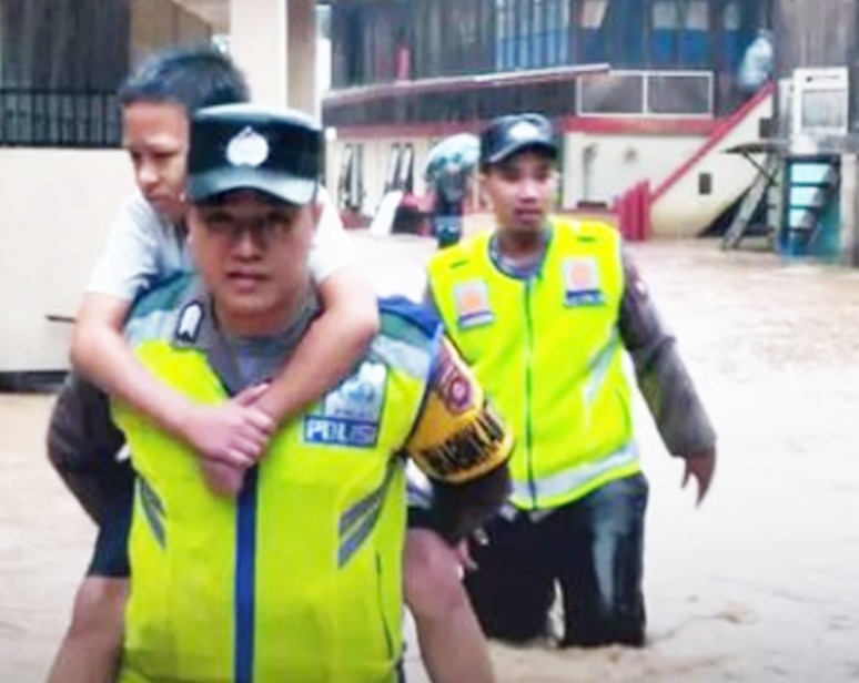 Evakuasi Warga Terdampak Banjir, Bhabinkamtibmas Polsek Jarai Gerak Cepat Turun ke Lokasi
