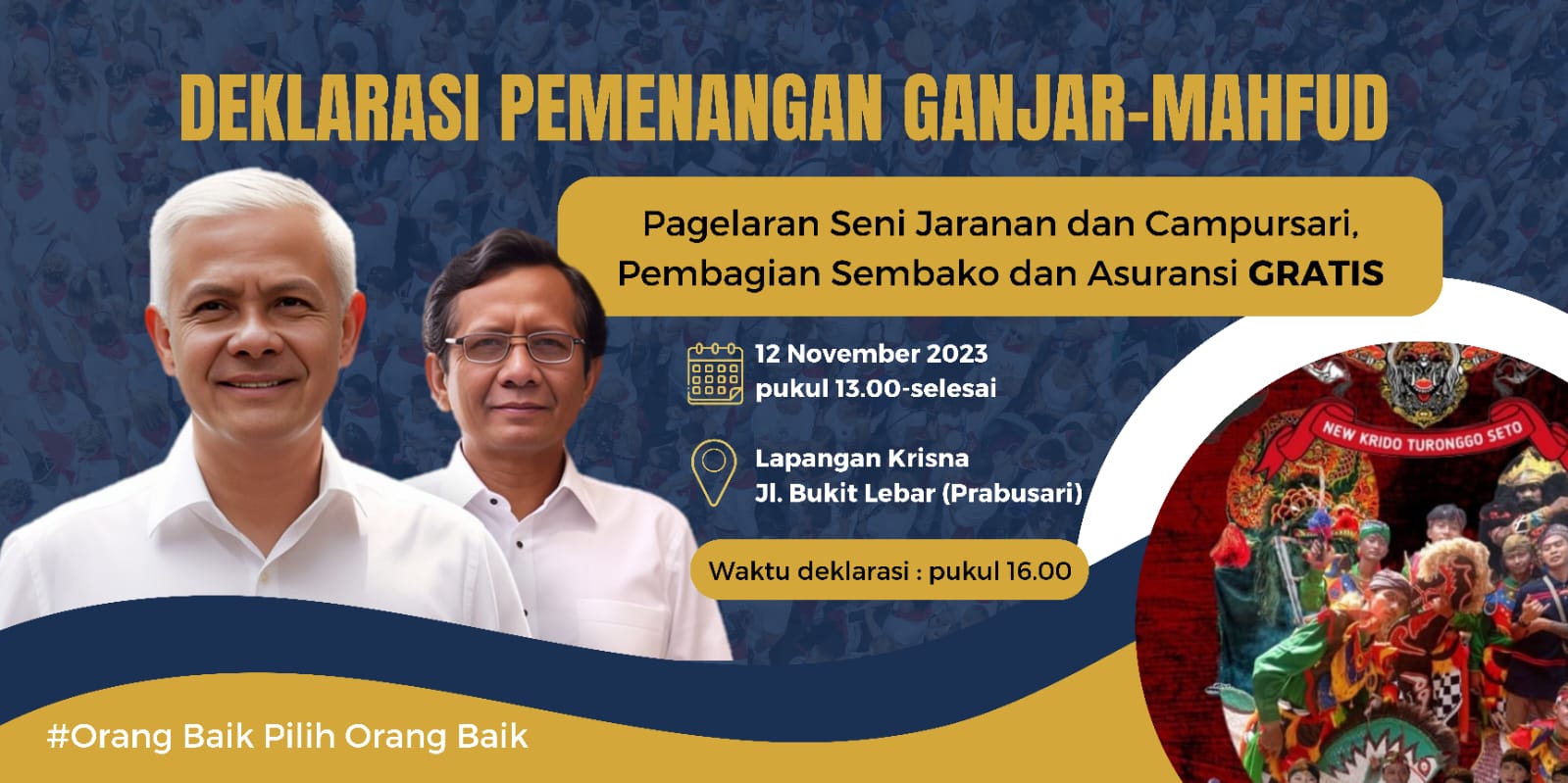 Ganjar-Mahfud Gelar Pagelaran Seni dan Bantuan Sembako 1 Ton Gratis di Prabusari, Catat Jadwalnya !