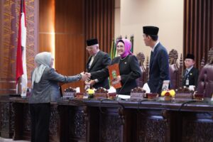 Setelah Pembacaan Laporan Pansus dilanjutkan dengan prosesi penandatanganan Keputusan DPRD terkait Laporan Pansus yang rancangannya telah dibacakan dahulu oleh Plt. Sekretaris DPRD Prov. Sumsel; H. Aprizal S.Ag SE M.Si dan telah disetujui seluruh peserta rapat.